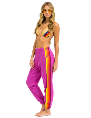 Aviator Nation - Women's 5 Stripe Wide Leg Pocket Sweatpant - Mauve