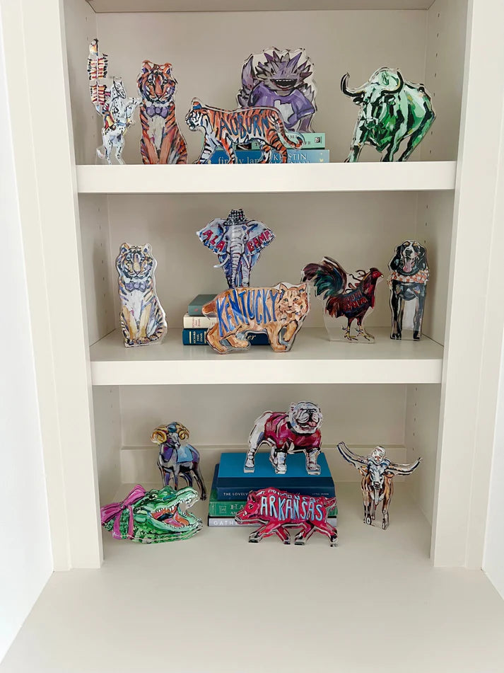 - All acrylic sizes vary depending on design. The larges range between 6X6 to 5X7, 3/4" thick. The minis are on average 2.5 X 4.5", 1/2" thick