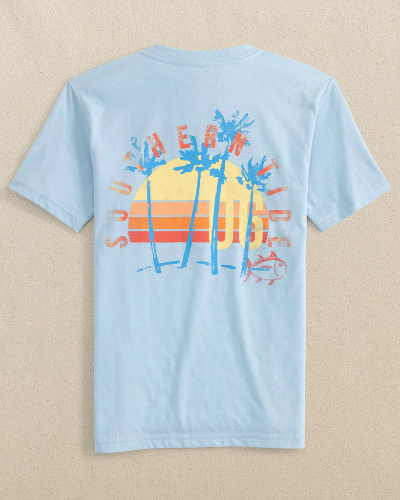 Southern Tide- Y Sunset Palms Tee- Cerulean